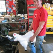 Mark taking a break from wrenching...