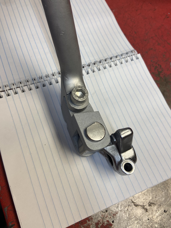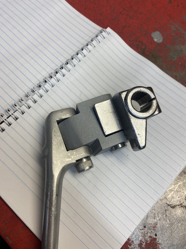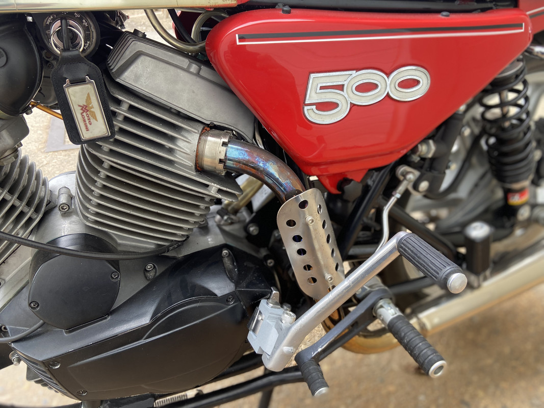 https://www.mdinaitalia.co.uk/M490117.htmlAll period road tests complained about the Morini foot peg position and all called for rear sets, none of the original 350 or 500 bikes had rear foot controls. The Tarrozzi units are a bit of a compromiseI have the Tarrozzi rear sets on my Morini 500. The Tarrozzi rear sets foul the kick starter, not a problem on the electric start 500 but a deal breaker on the kick only bike. I made a kickstart extender for my 500 based on the no longer available NLM unit, I think the picture of the piece shows up on Mdina Italy’s web site. https://www.mdinaitalia.co.uk/M380115MOD.htmlEasy enough to make if you have access to a milling machine. The Tarrozzi keeps the left hand shift and the conventional shift pattern. JimRight hand view of the Tarozzi rear sets mounted to a 500home made kick starter extension piece fitted in-between the knuckle and leverI still have to lift up the left side foot peg before swinging the kick lever and it will still glance the tip of the brake pedal but it works, I could make a pivot to the brake lever tip or shorten the pedal but it worksI have been fiddling with the location of the foot peg and the rotating piece behind the foot peg to get the best shift action out off the rear sets, I have also replaced the piece on the transmission shift shaft with a piece with a longer arm to increase leverage, its hard to shift between 2 and 3, its along rotation of the shift drum and sometimes I have to pull the foot peg up with my heel, I still need to adjust it more.