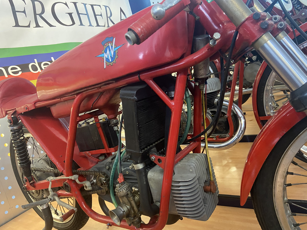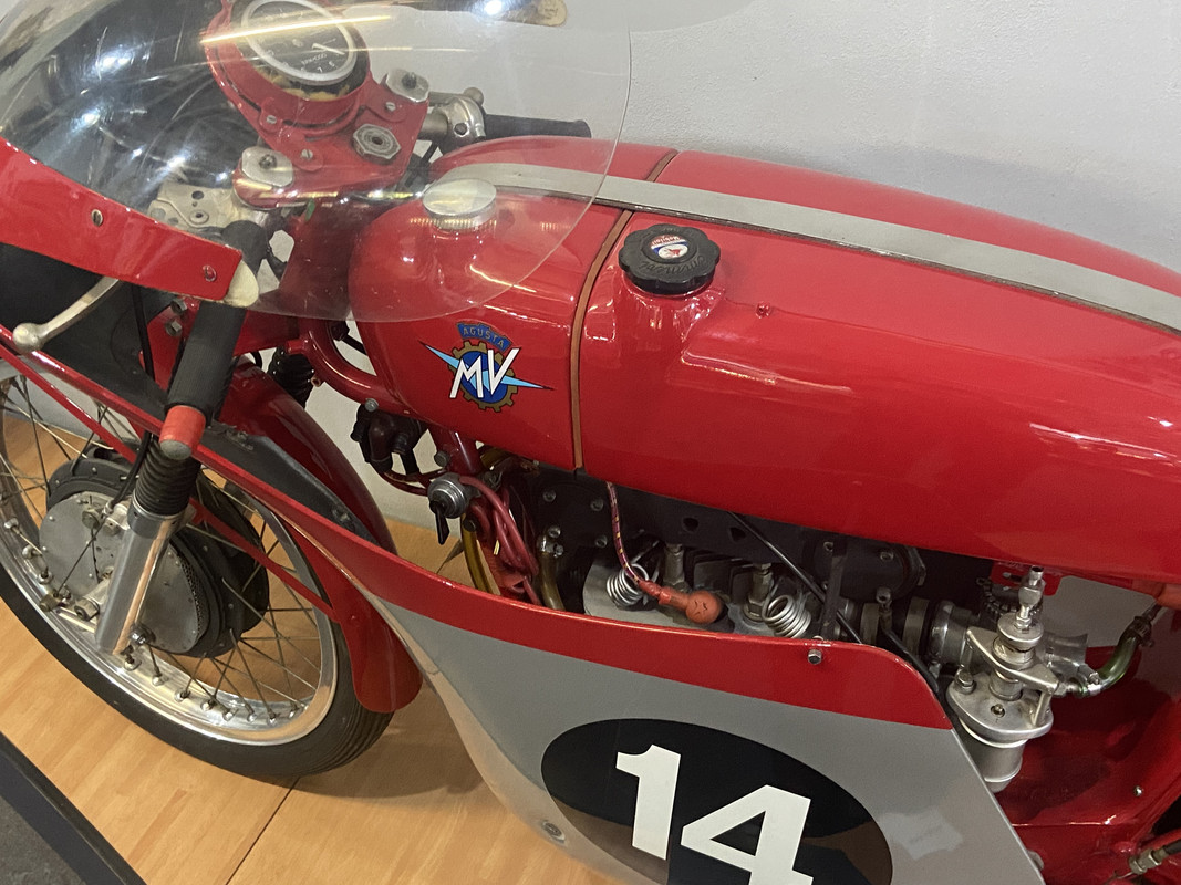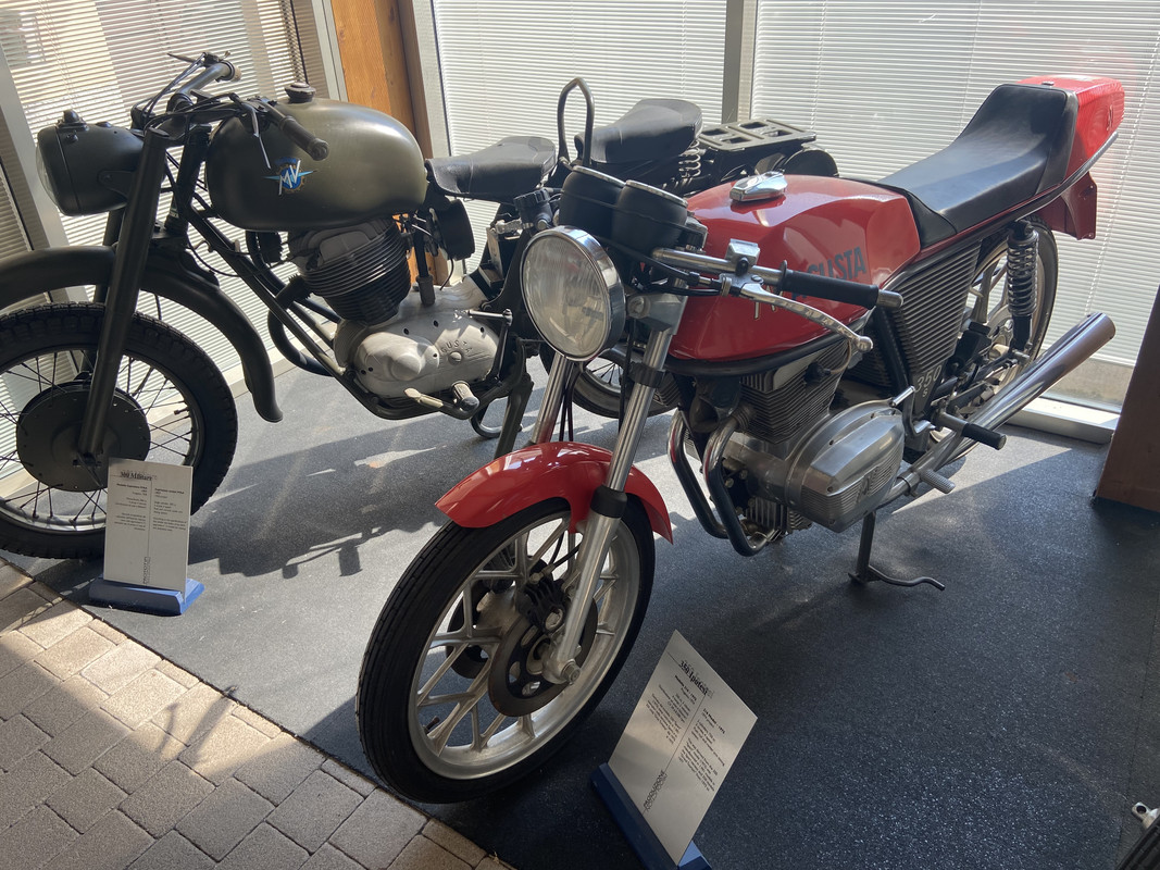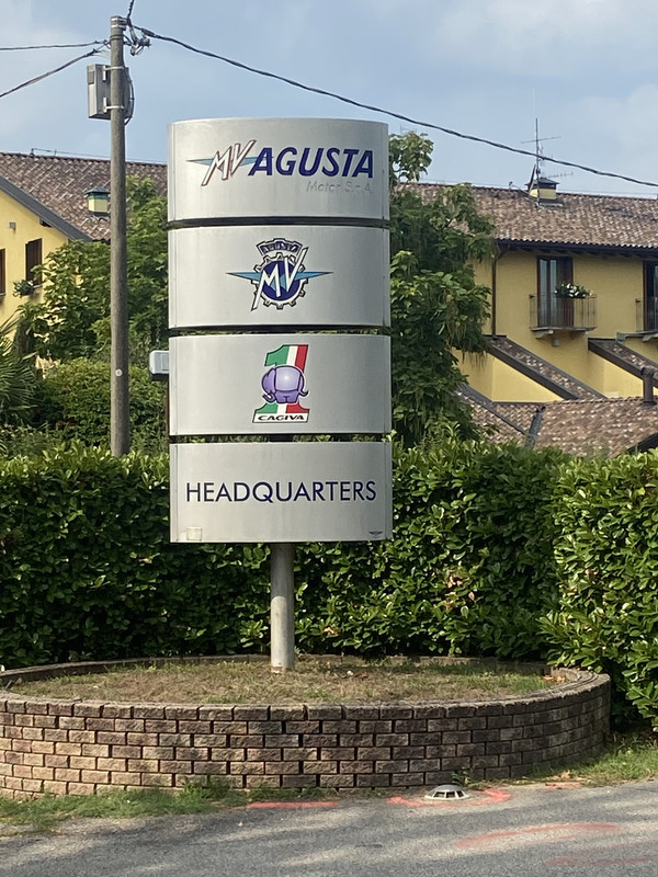 I tried to get a peek inside but the receptionist said not a chance. There was one modern MV motorcycle on display in the factory lobby.