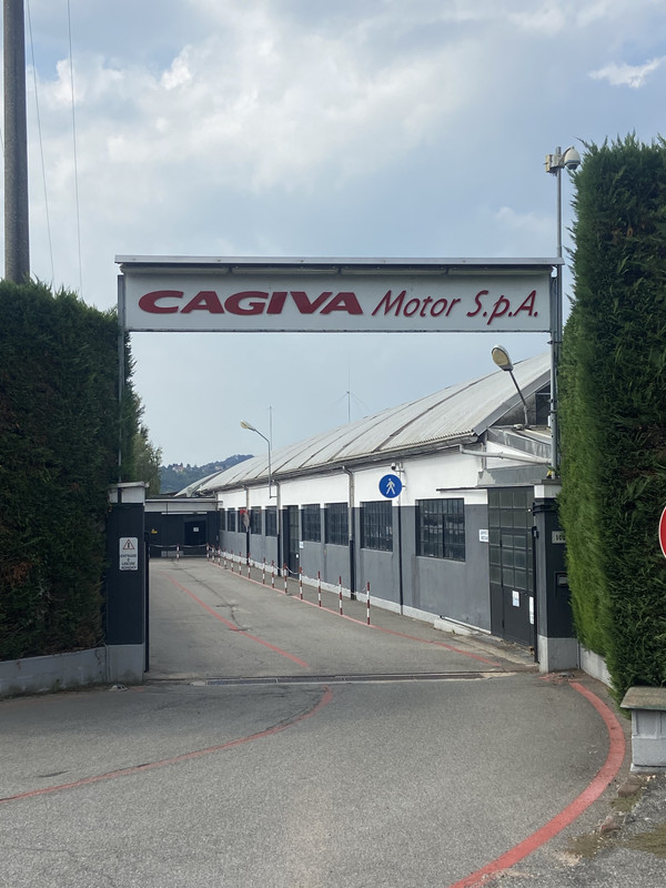 The mustard colored building shown in the photo of Cagiva’s entrance sign is a pretty decent hotel, located right on the factory fence with the lake behind.  I stayed there overnight once but didn’t get to tour the factory.  I’ll do it again some time, it’s a beautiful area and the history of Macchi’s Schneider Trophy race planes being pushed out of the factory for takeoff is really something.  Obviously Aermacchi became a competitor of MV and the classic MV racers have nothing to do with Cagiva or their factory, but they bought the name and have done more with it since 1998 than Agusta ever would have done.