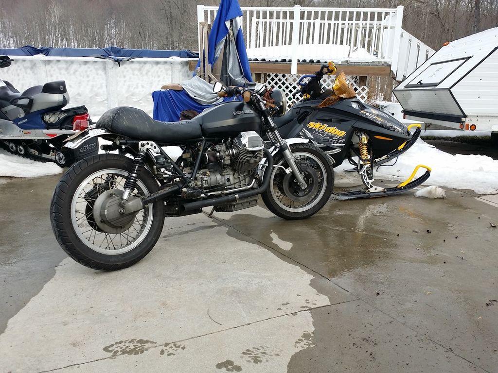 Continued on to Rough Edge's place. He had just got done with a ride on his Triumph.I should have taken a picture of the mess on his bike- he's adding a fender now ;-T