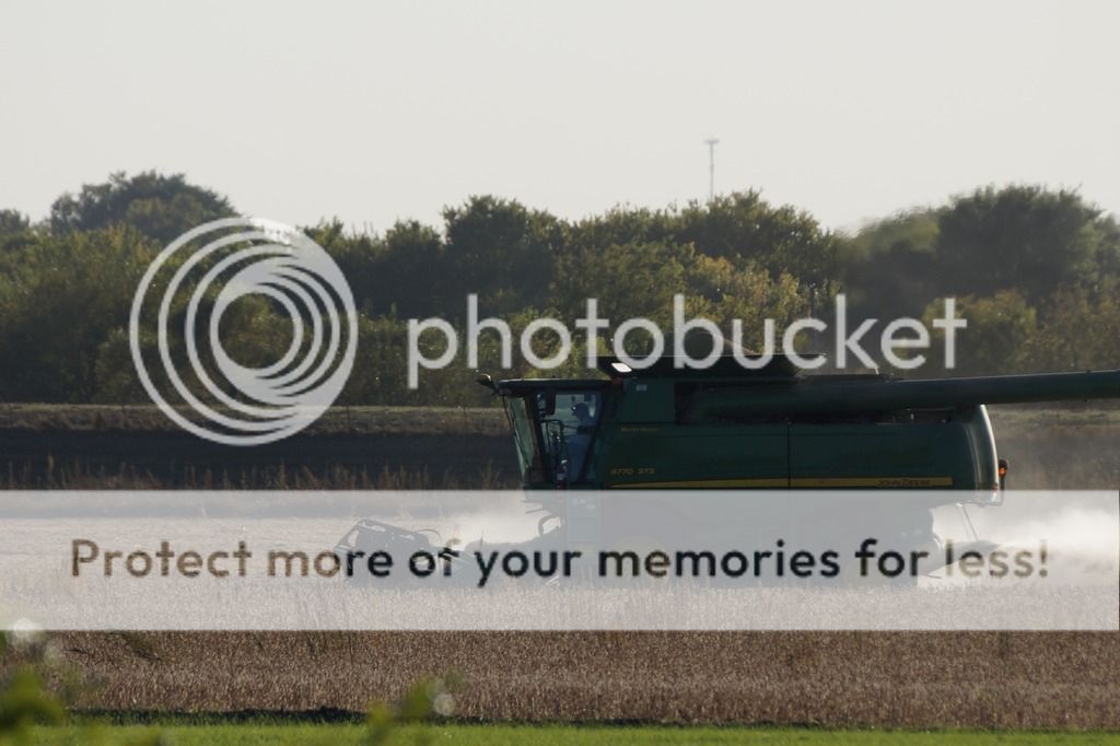 Looks pretty dry there also. My soybeans were a disappointment this year, Just 18- 20 bu per acre. Short and hard to get into the combine. Just too dry in the month of august which is key to yield in my area. Nice machinery, by the way. My combine is green, but 41 years old now.
