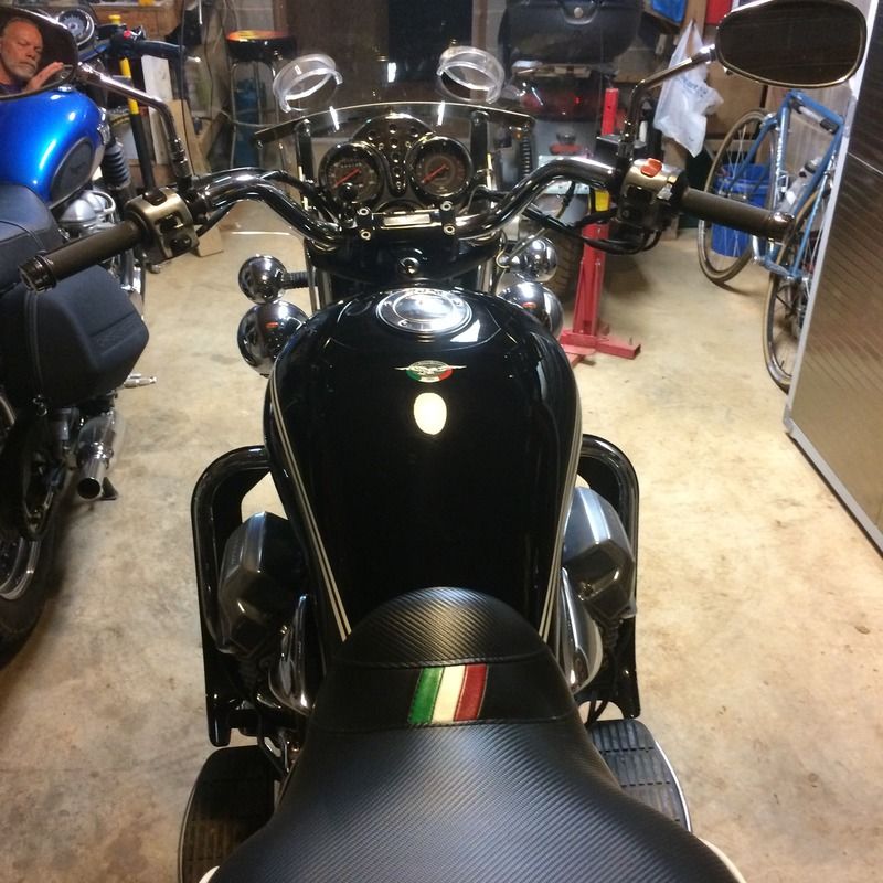 The Una Storia Italiana sticker is also on the tank of my '07 California Vintage...on top, just behind the fuel cap.