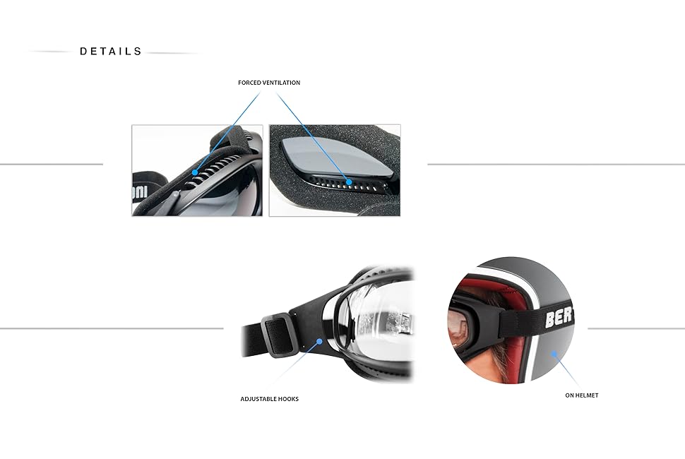 Briefly, the history goes like this: The first goggles (used in motoring, including in cars, motorcycles, and planes) were simple leather straps along the Lone Ranger design, with inset lenses.