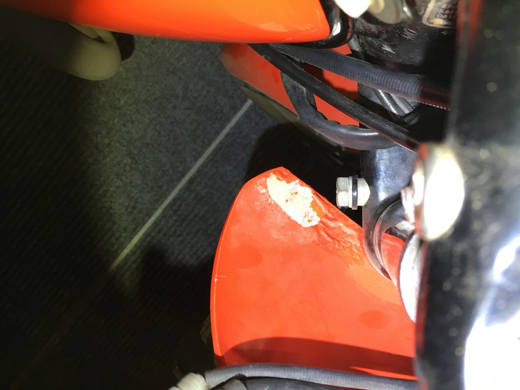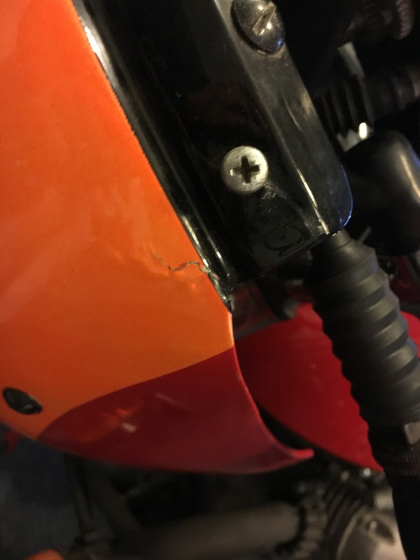 Wicks brought it to my attention at the same time I had noticed the fairing wasn't painted quite right.  The upper part where the screen is mounted should be satin black,  not red.
