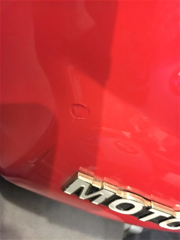 Also he suggested since he had some paint leftover that  I look over my fenders closely to see if they needed work.  I thought they were OK until I looked them over closely.  There was checking in the clear coat, a few chips, and a brake fluid stain.  I am glad I brought them in!!