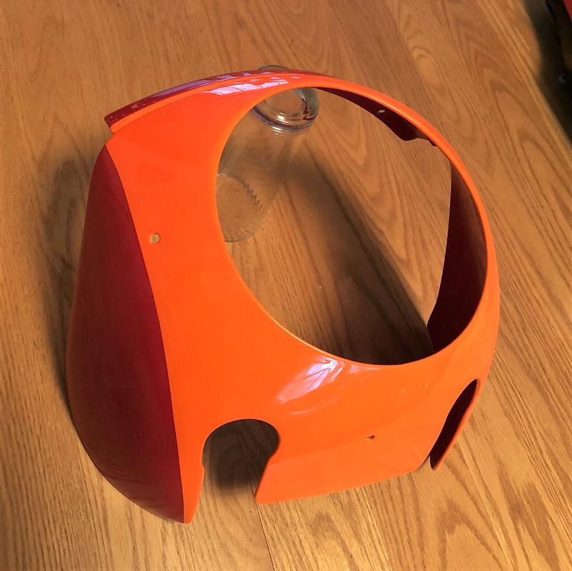The fairing had taken a severe beating when another bike tipped over into it.  I was worried about matching the dayglow orange, but House of Color had a perfect match.
