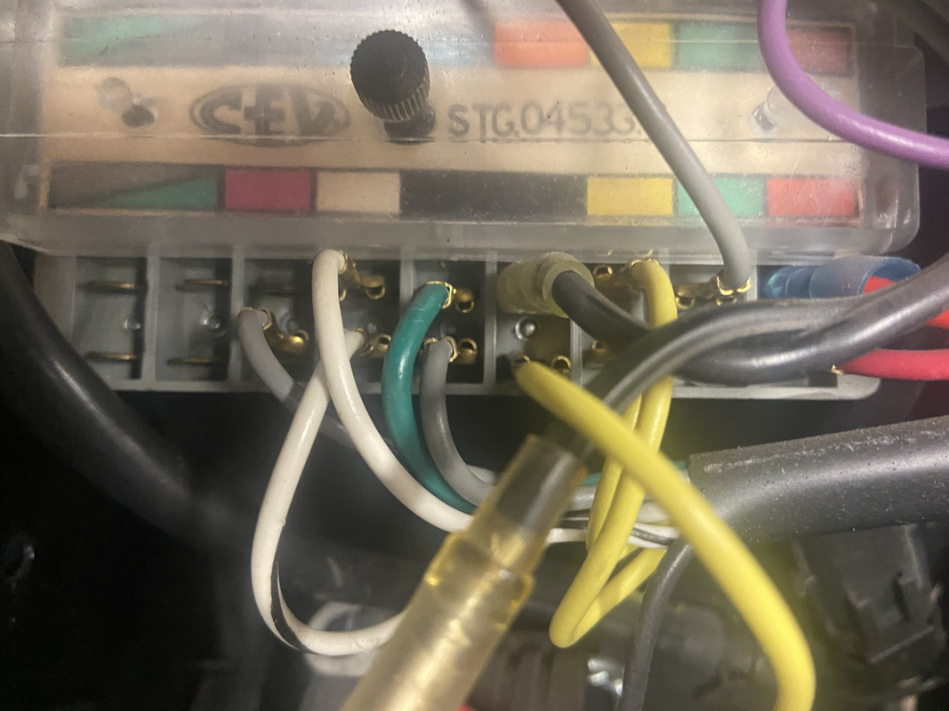 One of the few areas that looks a bit sore is where a previous owner has removed the original grey "CEV" fuse-box and fitted some gaudy new item with blade fuses. I've got the original and I'm trying to rebuild it and reinstall it, without setting the electrical reliability of the bike back 40 years.