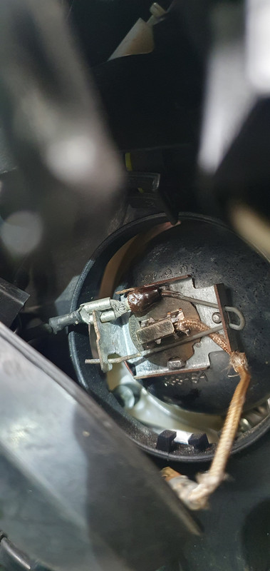 In the top photo y'all will see the terminal is missing and has been replaced with a terminal/ earth on the bulb retaining clip.
