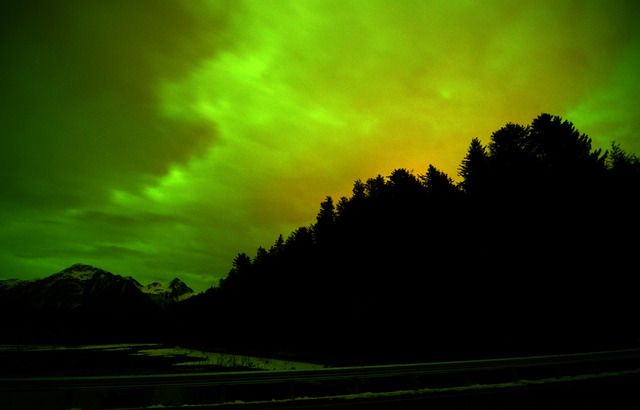 Massive solar storm struck last night. Completely overcast here, but they were so intense I still got some pics through the clouds. It's still in progress and should be visible through out the northern USA.