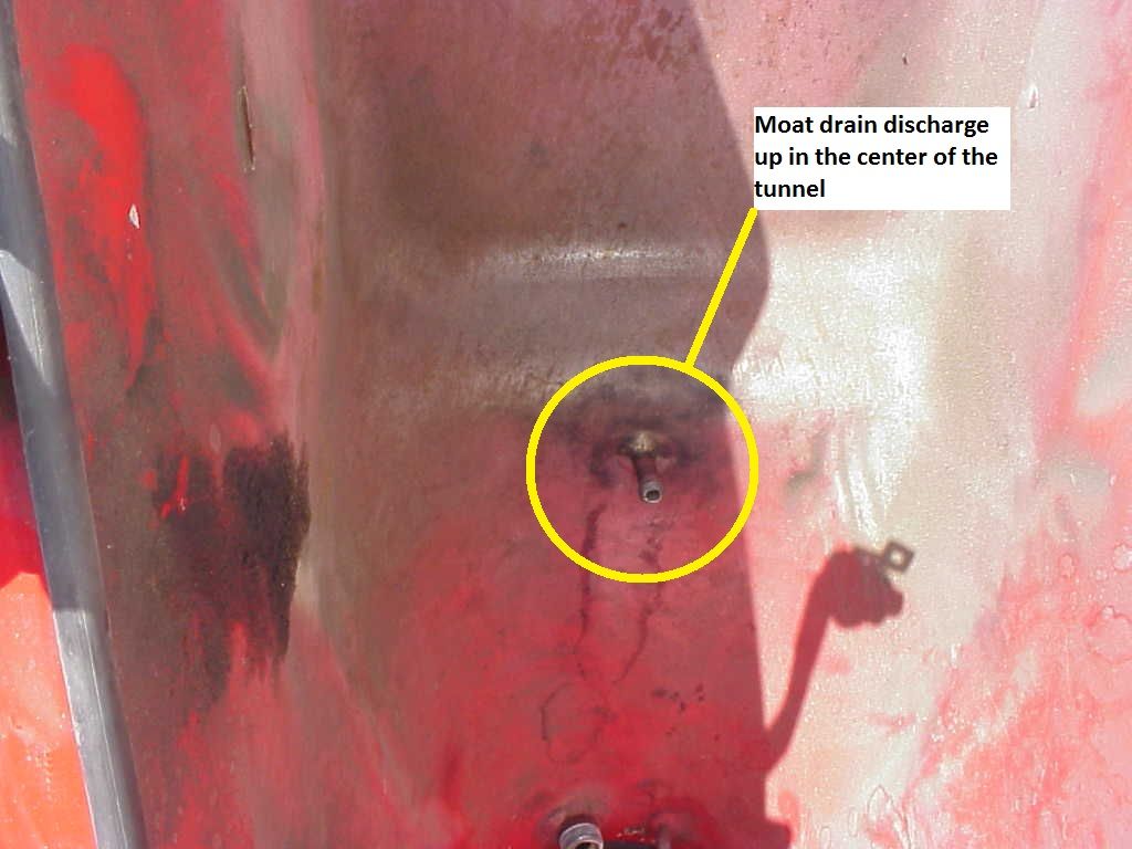 Here is the fuel tank opening showing the tiny moat drain at the rear, center of the moat: