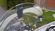 Did you have to do any cutting or reshaping on the windshield itself or only to get the right positioned mounts? Attachments are hose clamps that will fit most fork tubes and clamps on the handle bars.