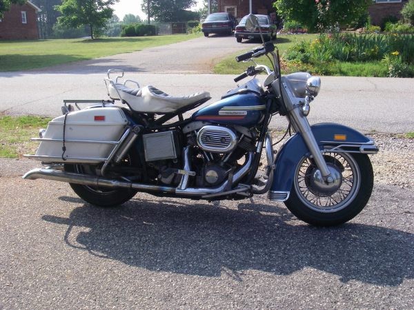 Just after we got married, we bought a nice original paint 1974 FLH in Jan/Feb 2001 for our 2-up riding. It was sold new at Catello and Son in Berlin NH up near the Canadian Border. We rode it all over VT & New England for a few years, then more down here. It's been sitting for a while but still looks pretty good. It's just a plain old bike. I really enjoy it but these aren't as cheap & disposable as these once were. The original top bag and windshield are hanging in the rafters.