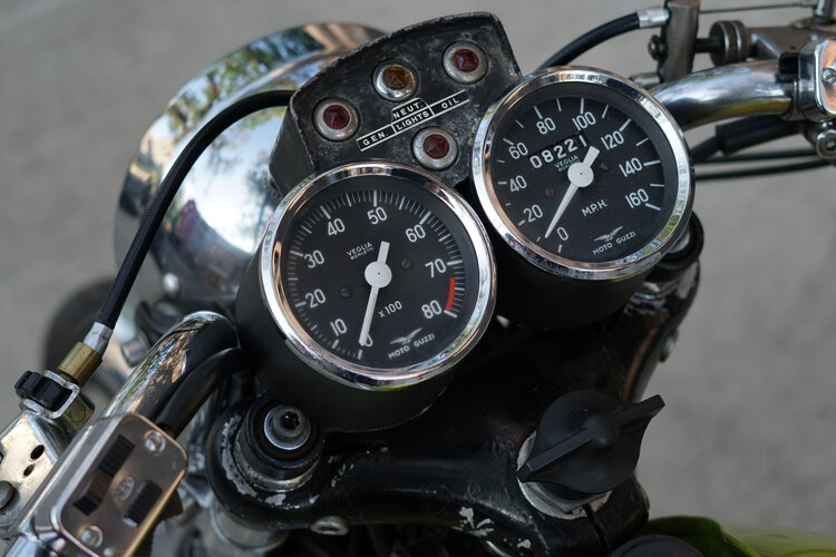 This bike has the advantage of being unmolested and low mileage, a good thing, but is otherwise a bit 'rough but restorable' to my eyes. I've also disliked how people cut off the Italian license plate holder ever since I bought a new replacement for my bike in 1989.