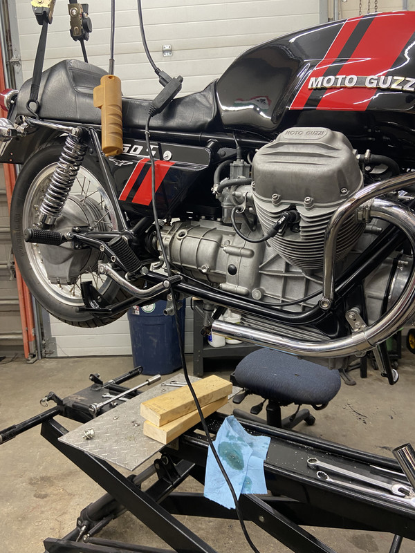 The front wheel was strapped down into the lift table wheel chock, rear end hanging from overhead crane. I have to admit not being comfortable holding a 3/8” drill with a 12.5mm bit cutting into the aluminum transmission case! Very slow drilling and the bike remained steady. I ran a litre of lube through the case to make sure I got any swarf out. Sure would have been easier with the transmission out of the bike but this was worth a try. I think for most similar types of thread repair I am going to use these inserts, I have mixed luck with helicoils where the fasteners are repeatedly removed.