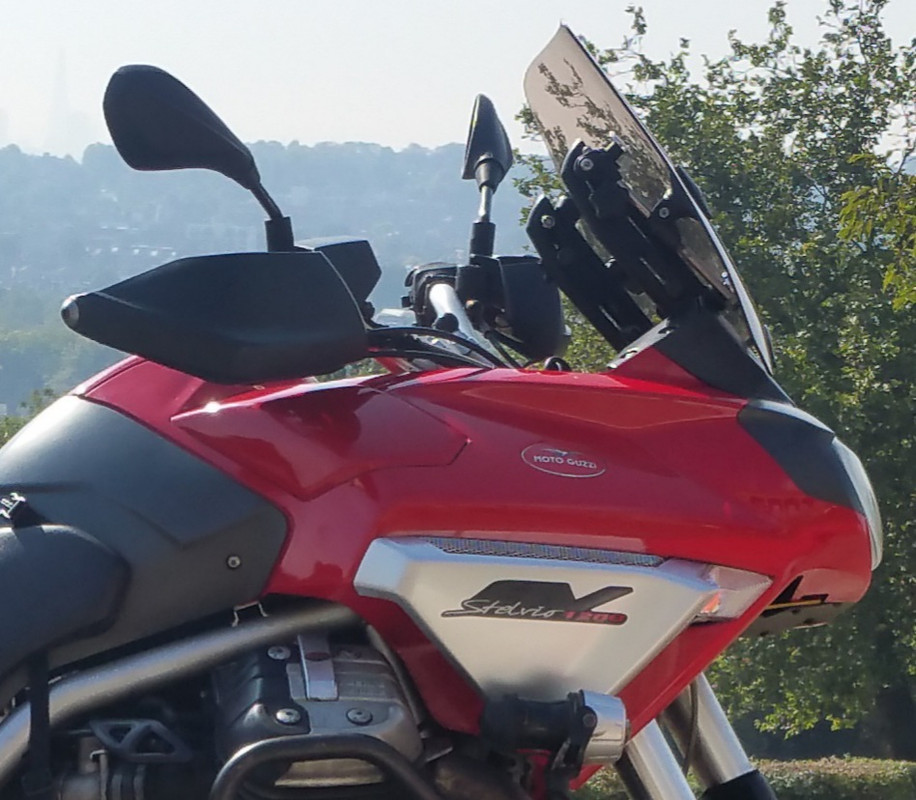 I use a small Givi screen on my Stelvio. Very adjustable so with experimentation you can hit a sweetspot.
