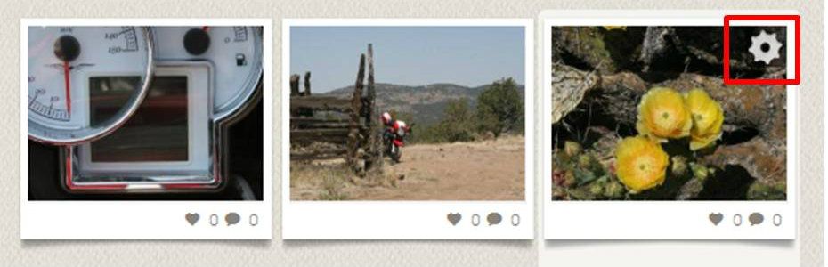 Your album will open and you'll see all your pictures as thumbnails.  If you mouse over the pictures you'll see a sprocket appear in the upper right corner of the picture.  Click on that sprocket.