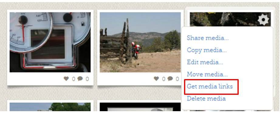 When you click on the sprocket you'll have a small information window pop up.  Click on the Get Media Links option.