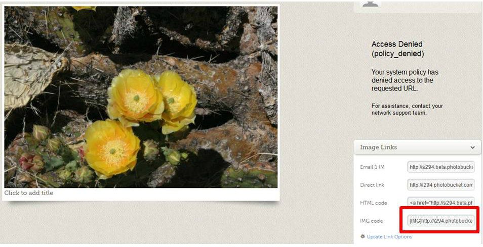 I've followed this procedure and can get the information from Photobucket pasted in the text of the message, but when I click on "Post" all I get is a small box with a "Red X" in it.  What am I doing wrong?