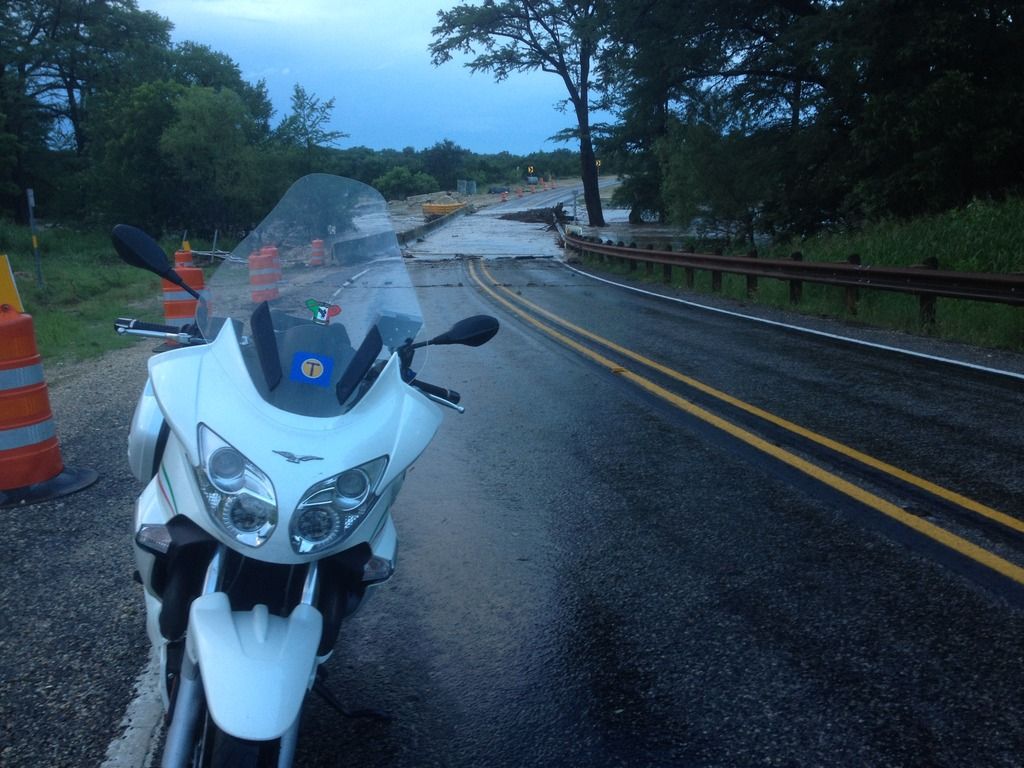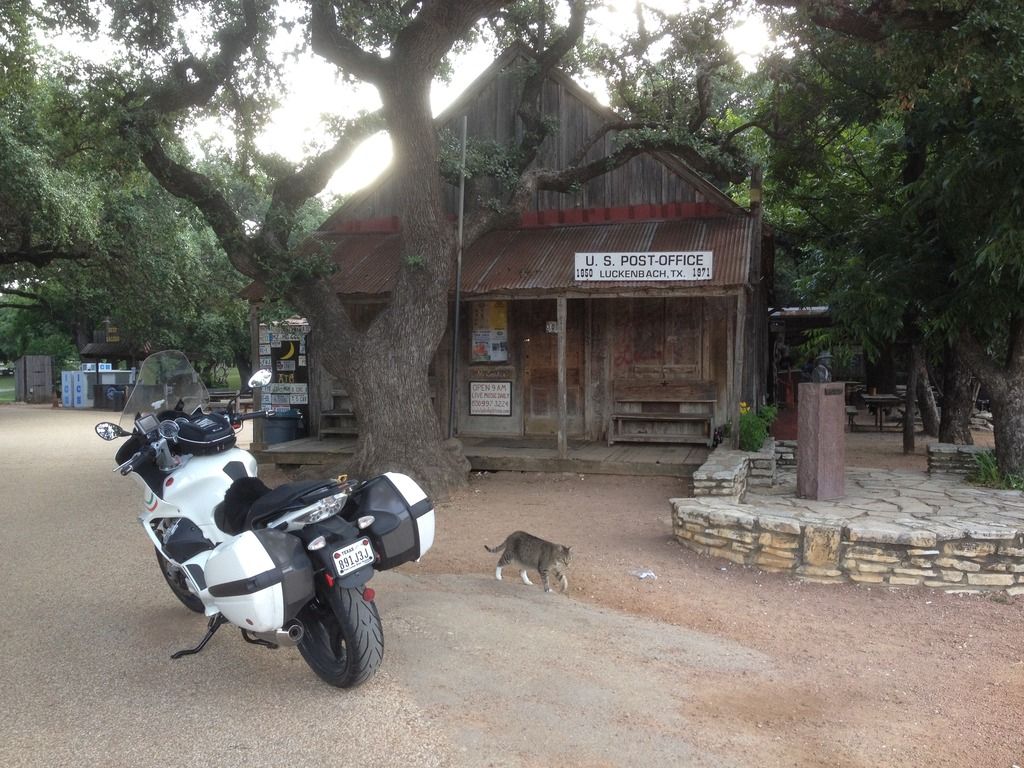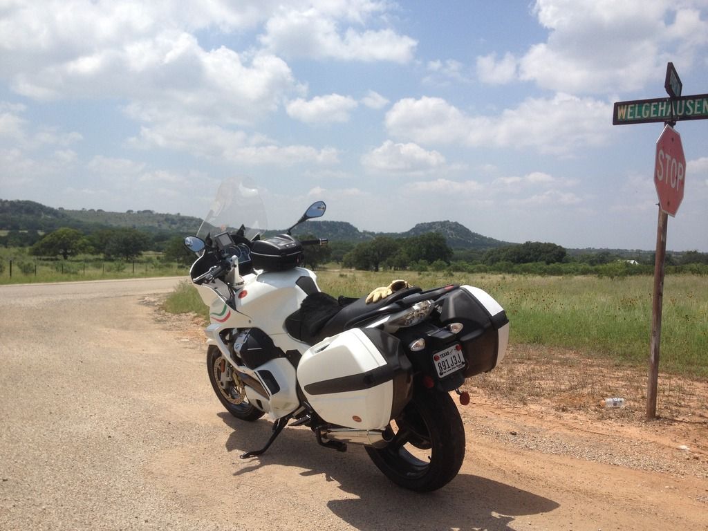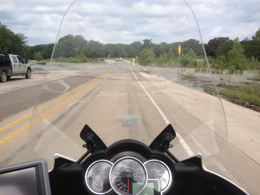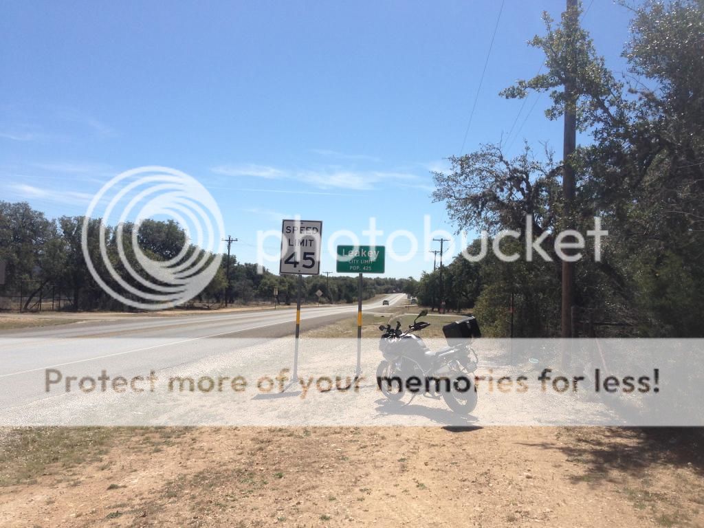 I have been wanting to ride in this area of the Texas Hill Country for some time now, so this past weekend armed with a Butler map I made a plan and headed down to check it out ......Just before entering Leaky the Frio River was over the road. Several trucks and a few Harleys were stopped in the road watching the water. It doesn't look very deep in the pic, but the water was moving very fast. None of the bikers were going to try it. It was now much later in the day than I intended to begin the Twisted Sisters route....While stopped at the river I noticed my rear tire was completely flat ! No wonder the bike felt awkward and heavy the last couple of miles.... Put the bike on the center stand and a quick exam revealed the puncture. Fortunately, I had a tire plug kit and a small electric air compressor my wife gave me as a Christmas present. 10 minutes later the tire was plugged and aired back up. Not entirely trusting the plug repair, I made the decision to head back home rather than test the plug on twisting mountain roads with no repair services for miles...I think this was the trip that wasn't meant to be --- but I'll be back !