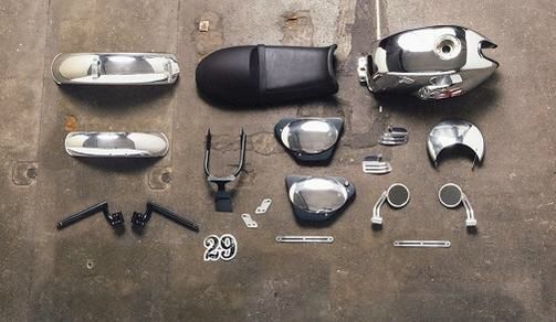 Really nice bits. I hope they aren't as hard to come by as the Record kits. I'd be interested in maybe putting that "Legend" tank bag on my Racer. The Camo paint scheme is way cool.
