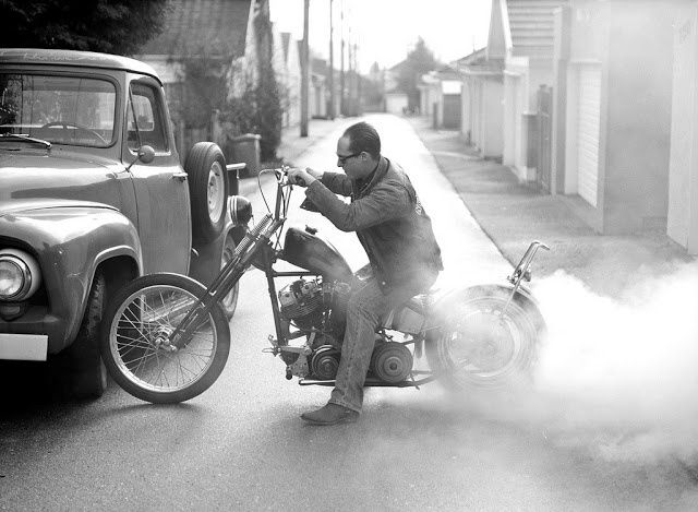 Read somewhere that doing big smoky MC burnouts for absolutely no apparent reason started on the IOM during the party that is the TT . Guess we can blame the Brits for this . Of course , the bikers at the IOM would add a flaming device protruding from their bum while performing this act , just for effect ;D Dusty