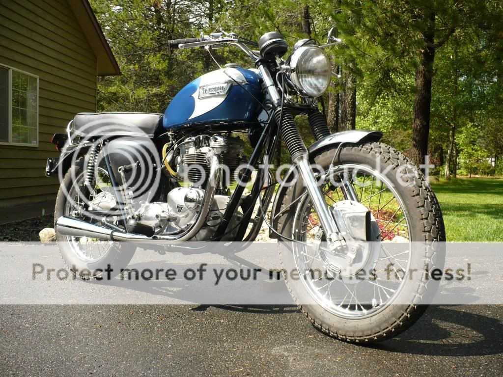 a 71 TR6C would be Pacific Blue. Here my original, complete with folding foot pegs and skid plate, wire frame headlight holder, and single gauge as per standard. I did upgrade it with a Norton Commando oil filter, as I did with my 70 Tiger. Must have modification for any Trumpet IMO