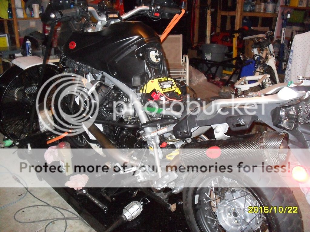 Well, spent the better part of the day cleaning and working on the Stelvio.  Reinstalled the skid plate and luggage racks (PITA!), did a valve adjustment,  throttle body balance, reset TPS, set CO Trim, etc.  It's as ready as it possibly can be for the ride tomorrow.   :bike-037: