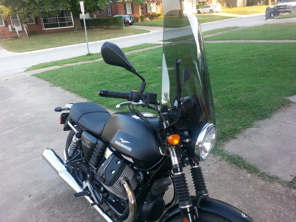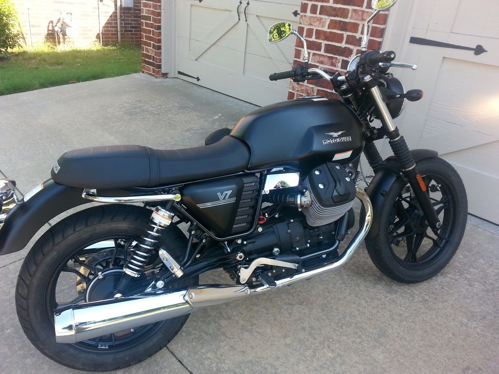 Thanks everyone for your insights, and welcomes. Based on some earlier replies, I bought the black sump extender from Guzzitech. I will get it installed at the first service. I talked to Donny, a certified Guzzi tech here in Tulsa, and he concurred that I should get the sump. BTW, mine is a V7 2014, so 5 speed, no ABS, no traction control. I won't be taking it off road, so not worried about extended sump. It does have the single throttle body though. Since then I also had a windshield put on it, as well as changed the mirrors (oh what a difference!). I would post before and after pics but I am not sure how on this forum. -akilesh