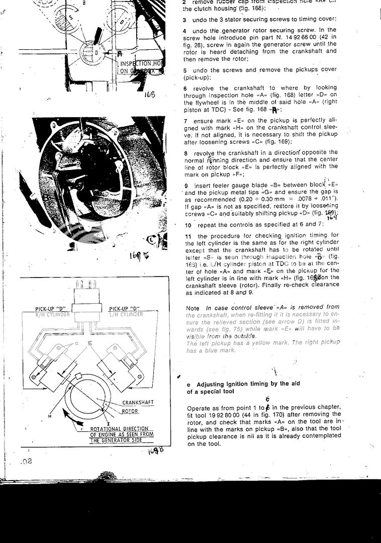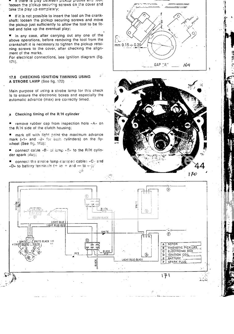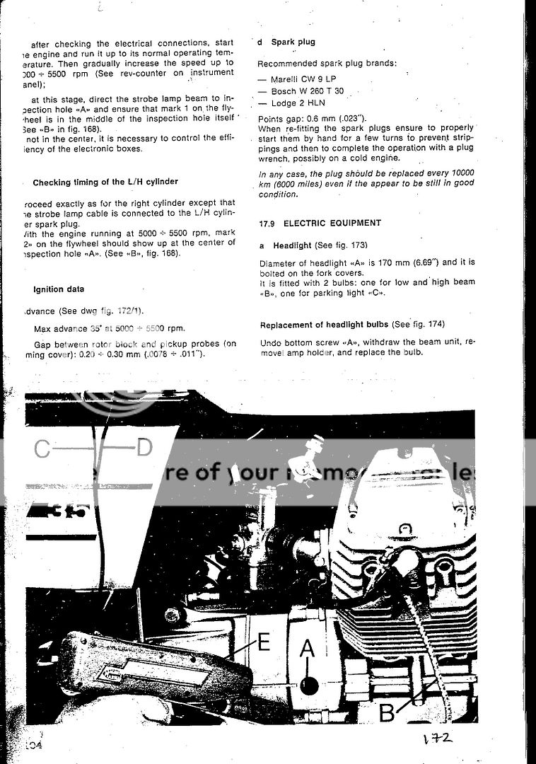 Mmmmm, I've spotted two pairs of dots and lines, I assume one for static advance and TDc per cylinder.I did see another line, is that it? Is there just 1 for full advance on cylinder number one (right sitting on bike)?If that is it, do I just hook the strobe up to plug lead one, run the bike at high rpm and check that the mark lines up with the centre mark on the inspection hole? Apologies for the bombardment of questions...