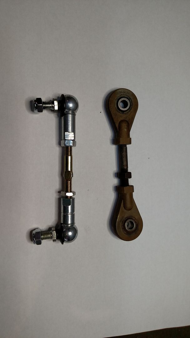 As some of you know, I have been putting together replacement shift linkages for Tonti bikes. The new linkage removes much of the slop and aids in smoother shifting. The rod ends are opposite thread for easy adjustment.