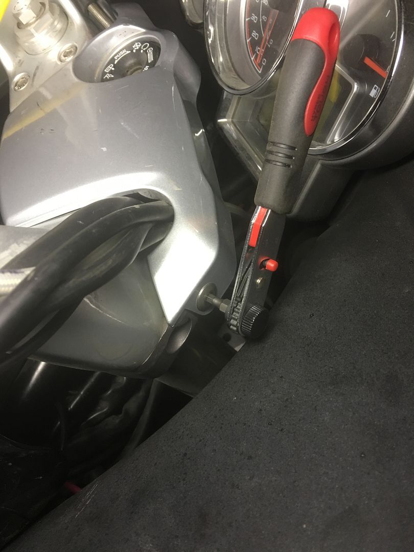 The steering head cluster was the only real tricky part. To do that without completely removing the fairing I had to dig up a mini 1/4" drive ratchet I have so I could get the retainer screws out.  That made the job a lot easier.