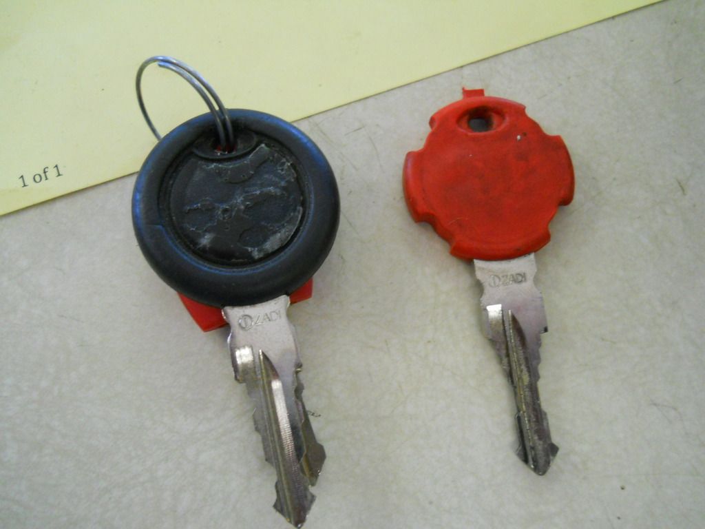these are the keys that came with my 04 breva 750. the red key fits ignition only and the black key works in the gas cap and the seat lock.